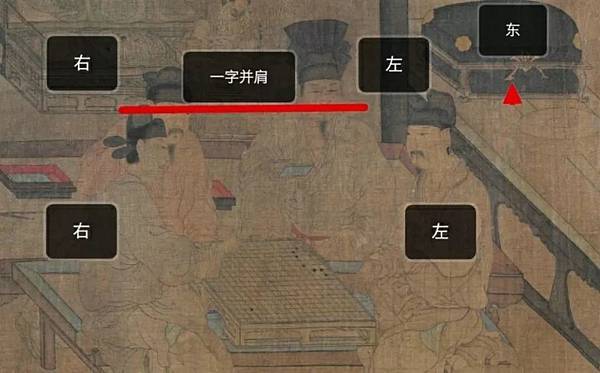 那以東邊為主,可是東邊坐著兩個人啊,那左邊那位三弟不是越位了嗎?