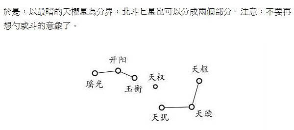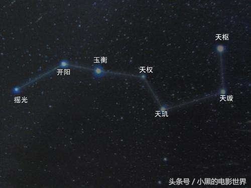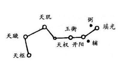 天樞、天璇、天璣、天權四顆星組成斗口;