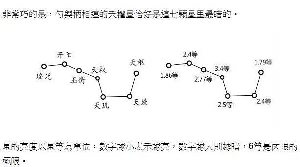 以下是北斗七星中幾顆主要恒星的大致距離: