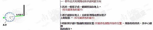 由於科技的發達,現在每個人手上都有一台智慧型手機,裡面有GPS(全球衛星定位系統)裝置,只要安裝地圖App,輸入目的地查詢,不論東南西北,馬上就知道如何從目前所在位置到達目的地,路線一目了然、非常方便。但是,如果手機沒電、手機壞掉或是沒帶手機時,我們要如何辨別方向前進呢?在都市裡,或許我們還可以透過路名或建築物地標來判斷相對位置,但若是在偏僻的鄉間、漆黑的山林或是一望無際的海邊呢?你可能會立刻想到「指南針」,但一般人應該不會隨身攜帶指南針吧。那究竟在智慧型手機出現之前、在沒有指南針的時候,人們要如何判斷方位呢?