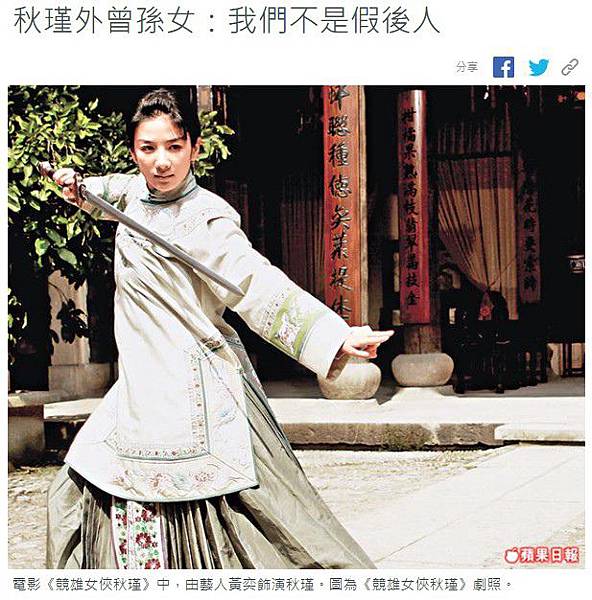 《競雄女俠-秋瑾》12月在台上映 秋瑾後人激動落淚
