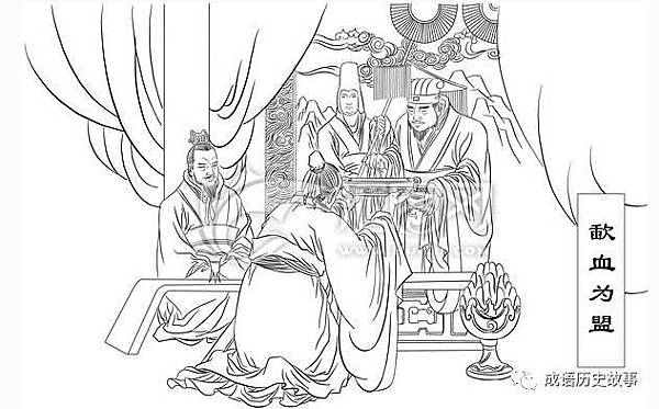 早在春秋戰國之前,西周王朝分封諸候——那時還沒有設立郡縣制度——大諸候下面又分封小諸候,公、候、伯、子、男爵分五等,大、小諸候各自占據一塊土地,實施封建割據。這些諸候國為了自己的生存,小的諸候國要尋找一個強大的靠山,強大的諸候國要擴展自己的勢力,便要拉攏一些較弱小的諸候國做自己的黨羽,以稱霸天下,於是便形成了諸候國之間的結盟,到了戰國時期,蘇秦和張儀遊說於列國之間,締結「合縱」與「連橫」的盟約。而這些盟約締結時,都要舉行「歃血」儀式。見諸於史書的較早記載。