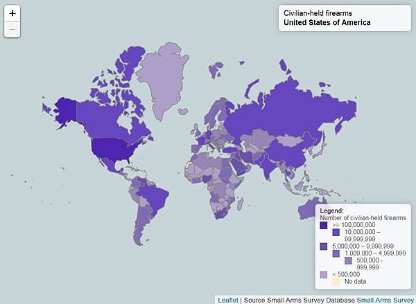如果單看平民擁槍的數字,2007年「小型武器調查」統計有 6億5,000萬把槍枝在平民手上,和現在相比成長了將近 32%。