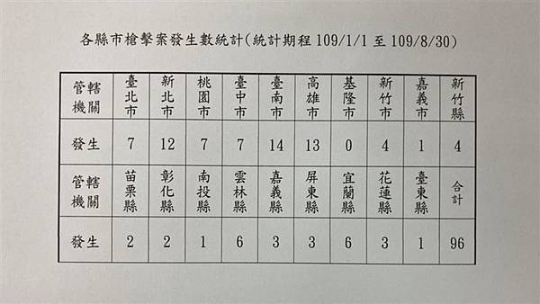 他說,昨提到的數據都只是「帳面上的數字」,恐怕還有更多黑數,要求警政署追本溯源,釐清槍枝彈藥的源頭,研議預防槍枝犯罪的策略,讓槍枝暴力悲劇不再發生。