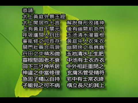 黃庭外、內二經,《外景經》一百九十六句,分為上中下三經或二十四章,《內景經》四百三十七句,分爲三十六章,均是規整的七言韻語,各版本異文甚多,句之多少、有無及次序先後,各有不同[3]。