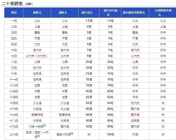 二十等爵 - 維基百科,自由的百科全書 http://tinyurl.com/y5zybk2w