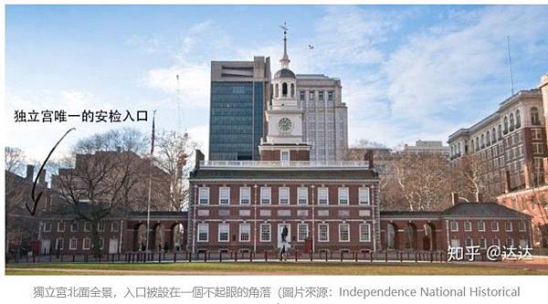 獨立宮北面全景,入口被設在一個不起眼的角落(圖片來源:Independence National Historical Park)