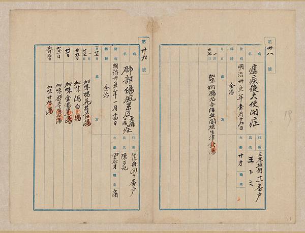 中醫病例 T0629D0517_02_0001-019、T0629D0517_02_0001-022 內容註名病名、患者的姓名與住所、年齡、職業、發病日期、以及處方等資訊。
