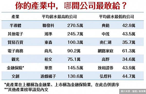 1,500家企業薪資全公開-員工平均年薪破150萬的有42家企業/「2021年薪資王」、「10年薪資成長王」 https://bit.ly/3BdN8wL