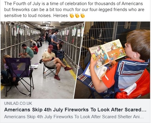 美國馬里科帕縣一間動物收容所(Maricopa County Animal Care and Control)感受到浪浪們的情緒,因此從去年起,他們決定在每年7月4日為狗狗舉辦一個專屬國慶日,邀請逾3百人到收容所,安撫這些受驚的浪浪們,幫助牠們順利熬過艱難的一天。