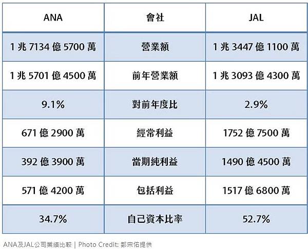 ANA及JAL薪資福利比較|Photo Credit: 鄒宗佑提供