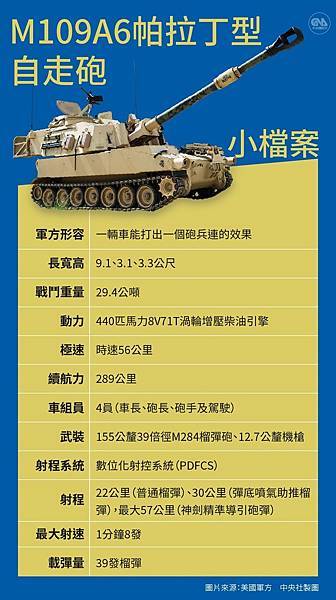 「號稱一車抵一連」美售台M109A6 邱國正:尚無正式消息 https://bit.ly/3svKJrR