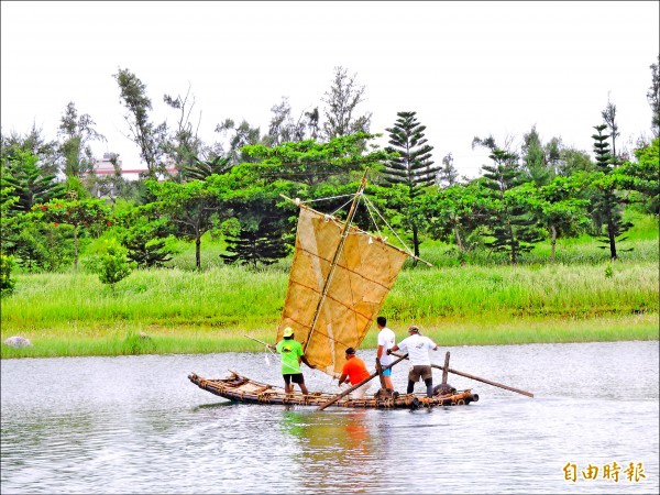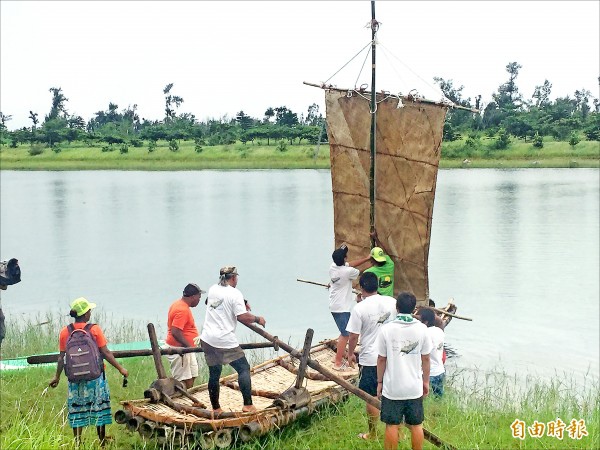 〔記者張存薇/台東報導〕重建東海岸阿美族航海文化,台東縣南島社區大學、阿美族馬蘭部落聯盟與索羅門群島團隊合作,打造阿美族竹筏船身、索羅門編製林投葉船帆,在阿美族人及索羅門匠師祈福下,昨天下午五時順利在活水湖下水揚帆,為重現四千多年前南島語族海上遷徙的旅程跨出一大步。