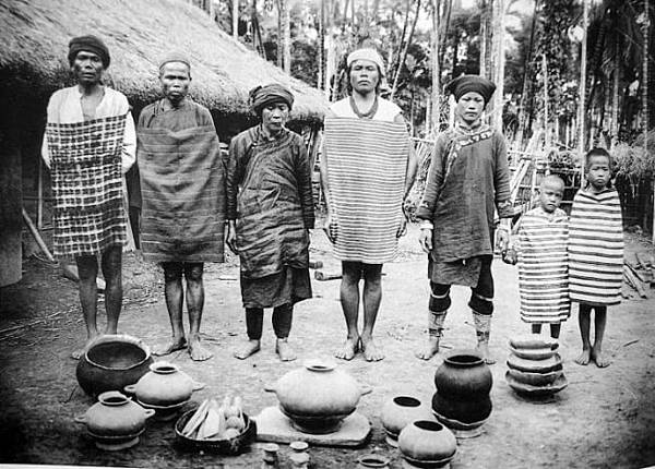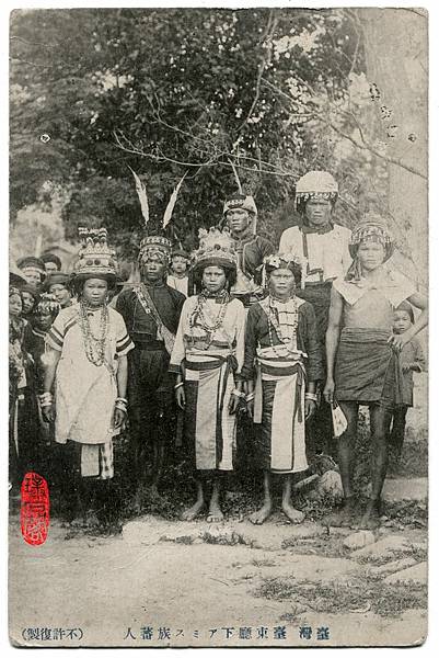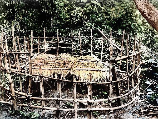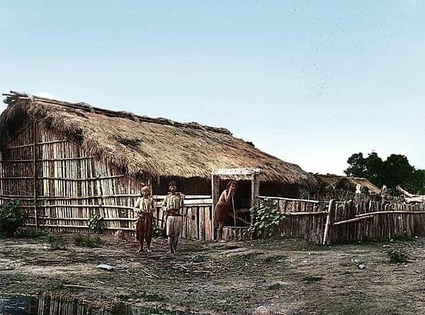 1910年,阿美族馬蘭社的公廨,由竹子、木材和茅草屋頂建成,有一個小圍牆和木門,已經具有庭院造型的雛型。阿美族是台灣人口最多的原住民族群,主要分布在花蓮、台東和屏東等地地區。馬蘭社則分佈於台東縣成功鎮、東河郷、卑南鄉、太麻里鄉等地,公廨原意是指官署,後為公共議事的場所,或是原住民的宗教場所。此照片顯示阿美族人丁眾多,在氏族為中心的社會組識運作中,已經出現類似漢人的公共會堂的場所。事實上,在漢人社會中,協調和處理氏族和鄰里糾紛事情時,正是在廟宇等宗教場所,如此才能由「神明見證」。阿美族人亦受到漢人民間文化影響,照片中幾名少年在公廨前持長槍武器戒備,長槍的槍頭與箭頭都是用木與竹製成的。阿美族主要生活在臨海平原地區,主要是耕種小米,也有一部漁獵,最大的祭典是豐年祭,反映其主體已是農耕民族。https://www.facebook.com/groups/4163124053704144/permalink/4929769080372967/