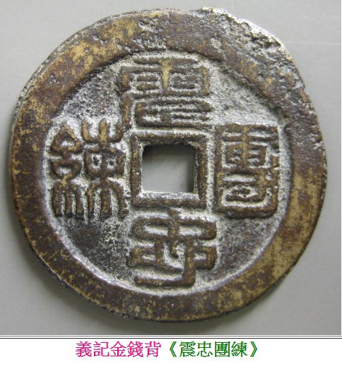 義記是出現于清咸豐、同治年間的一種錢幣,據考證,它是由屬於浙南閩北天地會的分支金錢會鑄行的。版式不多,但背字不少,仿佛龍生九子,個個不同。
