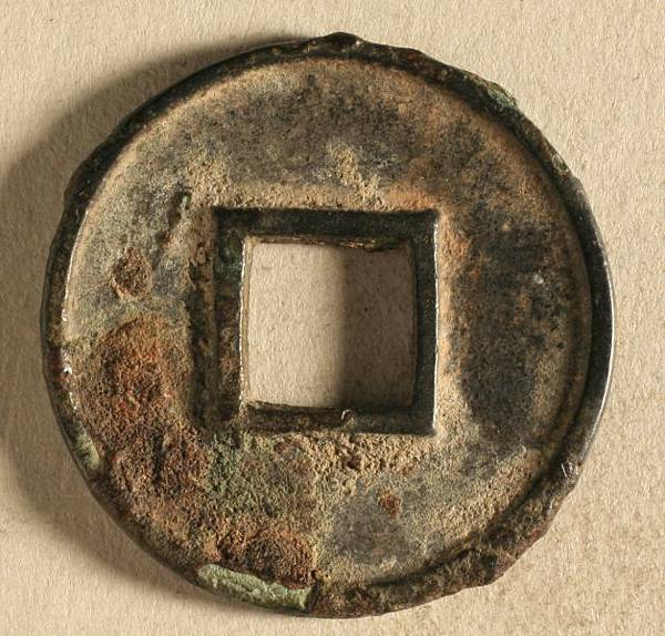 北周王朝建立於公元557 年,初期使用西魏五銖錢。四年之後,周武帝宇文邕即位,立刻更鑄了「布泉」錢。「布泉」錢鑄銘橫文兩字,左「布」右「泉」。根據對出土實物的測量,「布泉」錢重量約為4.3 克(7.5 銖)。「布泉」錢與西魏五銖錢並行流通,每枚「布泉」錢法定兌換五枚西魏五銖錢,是典型的虛幣大錢。