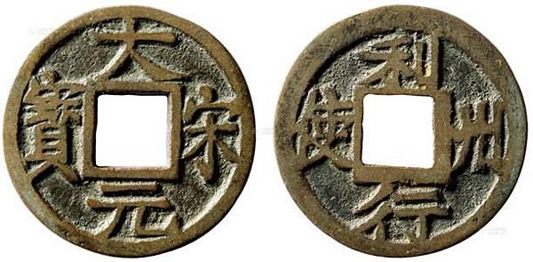 中國古錢幣之一, 有小平錢和當十大錢兩種,其中大宋通寶當十錢位列古泉五十名珍之列,為宋錢中之大名譽品,美品 。小平錢只有鐵質, 當十錢為銅質。