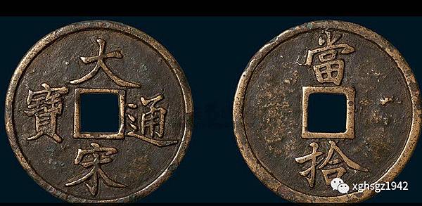 中國古錢幣之一, 有小平錢和當十大錢兩種,其中大宋通寶當十錢位列古泉五十名珍之列,為宋錢中之大名譽品,美品 。