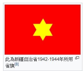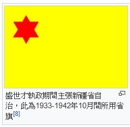 盛世才執政期間主張新疆省自治,此為1933-1942年10月間所用省旗[8]