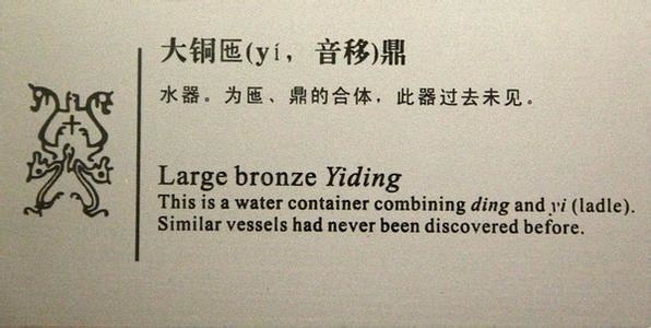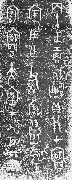 商代的銘文,最先是銅器上加鑄一個字的「族徽」,繼而則鑄刻出「祭祀父祖」的天干稱號或物器主人之名;甚至逐漸增加內容,諸如標明:國名、族名、官名、地名與人名等。