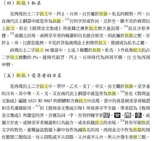 總而言之,從上述這些現象可以發現,商末周初青銅器上所謂的「族徽銘文」並不像是歐洲貴族徽章或是日本武士家徽那麼單純,它不僅是一種文字的形態,還代表氏族的結合。