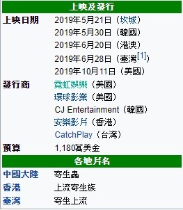 在坎城風光回到韓國後,票房至今也賣破 20 億台幣,證明此部片不僅深受評審青睞,對一般觀眾來說也能引起共鳴,兼顧商業與藝術的平衡。此作故事描述一家四口全是無業遊民,用盡詭計想以無孔不入的方式共享上流社會的生活。但他們需索無度的慾望卻讓情況逐漸失控。