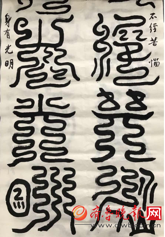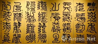 筆者通過對「雲篆天書」藝術的現代解碼,引領自己進人這個神秘的符號王國,採用選擇、鑑別、複製、加工、組合等方法,把「雲篆天書」中的方與圓、曲與直、虛與實、陰與陽等藝術特徵加以運用,再調動書法篆刻中筆法墨法、結體、章法、刀法的構成規律,創作出了一批設計作品。