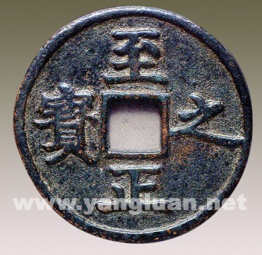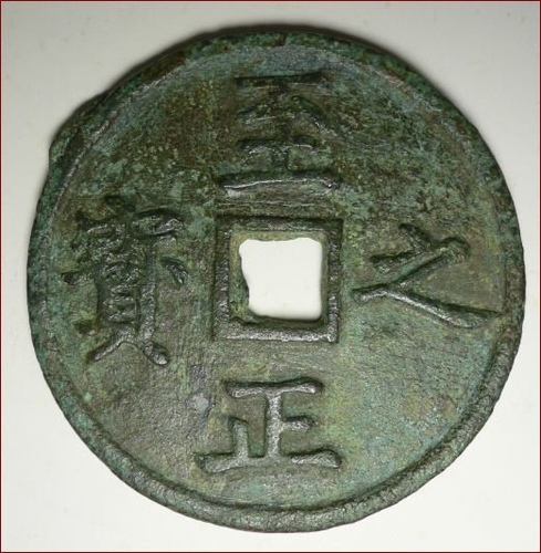 敝人是1991年至上海工作,偶然間至西安旅遊中買了些北宋古錢,從此迷上了古錢的收藏。每至週末,一早即走街串巷去尋找古錢的芳蹤。約在1995年認識了一位元張姓古董商,由於緣分契合,我一有時間就來這家古董鋪“淘寶”,在真真假假的淬煉下,度過了那段“衣帶漸寬終不悔,為伊消得人憔悴” 的歲月。下面的“五分”與“一錢”就是那段時間所得。
