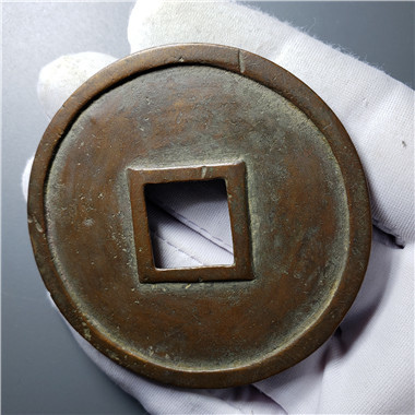 依據研究考證:此花錢出自宋代都城東京錢監,是一枚傳世珍品。泉界一直認為“龜鶴齊壽”吉語大花錢具有宮廷風格,品相上乘。經測定:直徑57毫米,穿口15毫米,厚度2毫米,重量39.5克,是較為罕見的吉語大花錢。