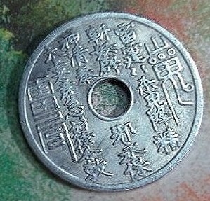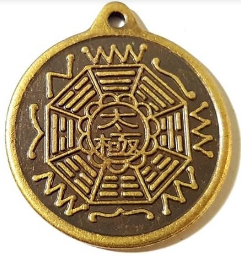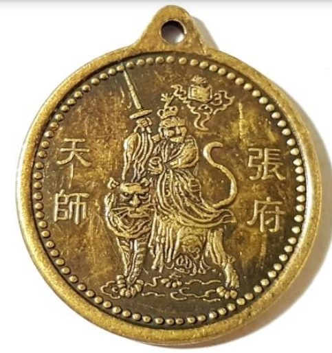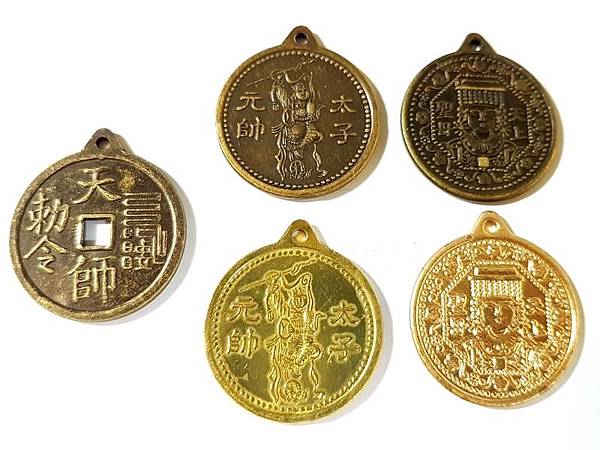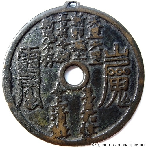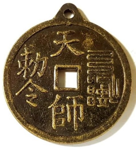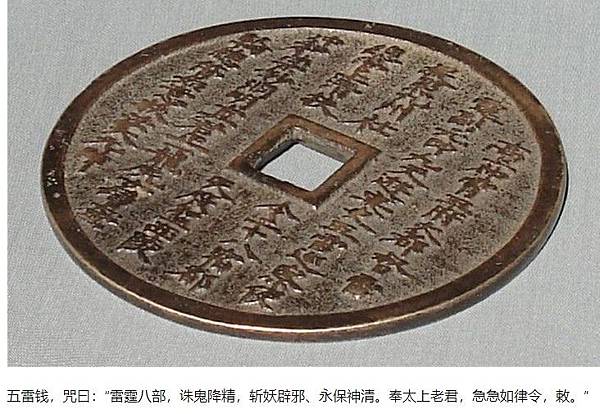 五雷钱,咒曰:“雷霆八部,诛鬼降精,斩妖辟邪、永保神清。奉太上老君,急急如律令,敕。”
