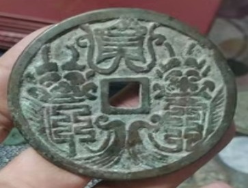 此枚元代山鬼花錢直徑64.5mm ,厚重、端莊、大氣,紅斑綠銹,銹色誘人,字口深俊飽滿,一眼開門到代的山鬼精品,也是迄今發現最早期的山鬼花錢,已知存世量不足十枚,彌足珍貴,相對大家常見的清代山鬼花錢而言,說它是山鬼花錢的鼻祖也不為過。