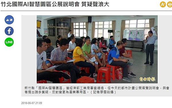 [記者廖雪茹/新竹報導]新竹縣「國際AI智慧園區」獲經濟部工業局審查通過,縣府今天在竹北市東興里集會所召開公開展覽說明會,與會者提出諸多質疑,並憂心帶來污染,反對變更為產業專用區,希望作為國中學校用地或是扶植青年創業的基地。