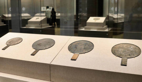 4月23日,觀眾在看展。王綱懷先生1941年出生於上海,1964年畢業於清華大學土木建築系。高級工程師,清華大學顧問教授,長期從事工程設計、水質處理、環境保護、國土整治、科技諮詢、發展戰略等領域的相關工作。他曾先後向母校捐贈銅鏡274面(包括101面日本和鏡),現已成為清華大學藝術博物館的重要館藏。