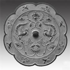 盛唐、中唐時,民族特點加強,多為花鳥鏡、瑞花鏡、人物故事鏡、盤龍鏡、對鳳鏡等,寓意吉祥,清新活潑,表現大唐帝國蓬勃向上的精神面貌。構圖也不像傳統漢式鏡那樣嚴格對稱,而是採用繪畫風格,但求均衡,不求對稱。裝飾手法也比以前增多,華麗精緻,雄健豪放,是唐鏡的最盛期。晚唐處於衰落趨勢,多為八卦鏡,萬字鏡,有宗教意義,整體上簡單粗放,單調乏味。
