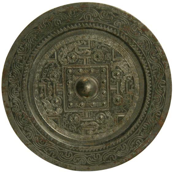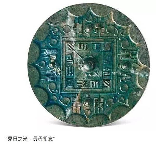 紋飾主題更為明確,繁而不亂,多出現博局鏡(也稱規矩鏡)、四神鏡等圖案。鏡背銘文流行,且多呈現“大富貴,樂無事,宜酒席,日有喜”、“ 見日之光,長毋相忘”等吉祥語,成為花好月圓、團圓吉祥的象徵。