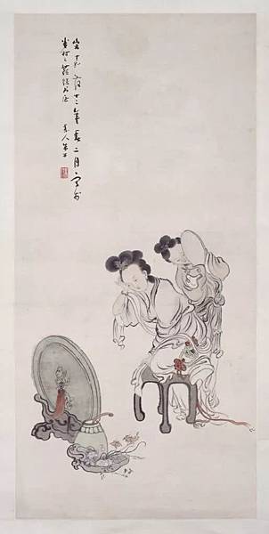 清 朱本對鏡仕女圖軸 故宮博物院藏