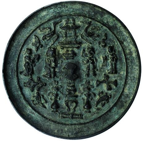 1:特點 銅鏡製作更見衰勢,除傳統式樣外,雙魚紋、雙龍紋、人物故事如柳毅傳書等是較新穎的式樣。但這時的銅鏡製作粗糙,較多的只有紀年銘文而無紋飾。在這一時期,特別是明代,仿造漢鏡和唐鏡的風氣很盛,所仿銅鏡多數是漢代的六博紋鏡和唐代的瑞獸葡萄鏡,仿製銅鏡一般形體較小,紋飾模糊不清,已無漢、唐銅鏡的昔日風采。