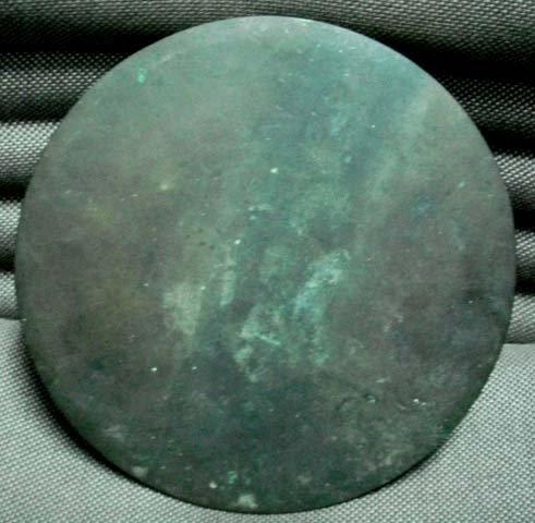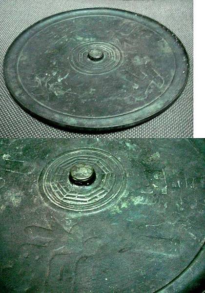 1:特徵:均為圓形。鏡面近平或微凸,鏡身較薄,背面中央有一拱起的弓形(或稱橋形)鈕。西周銅鏡也都是圓形的,鏡面平直或微凸,鏡身較薄,鏡鈕有弓形、半環形、長方形多種