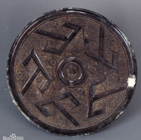 流行於戰國的銅鏡有許多種,從紋飾類型上看,最為流行且比較重要的當屬山字鏡和蟠螭紋鏡。「山字鏡」通常以紋飾中的「山」字數量命名。如三山鏡、四山鏡、五山鏡、六山鏡,其中四山鏡常見、五山鏡較少,三山鏡和六山鏡最為罕見。關於山字紋的含意,有學者認為,這是刻四山形以像四岳,此代形以字。也有人認為,秦漢至今的山字,幾乎沒有變化,山在古代象徵不動、安靜、養物等,如同現代寓意福、壽、喜字一樣,含有吉祥之意。