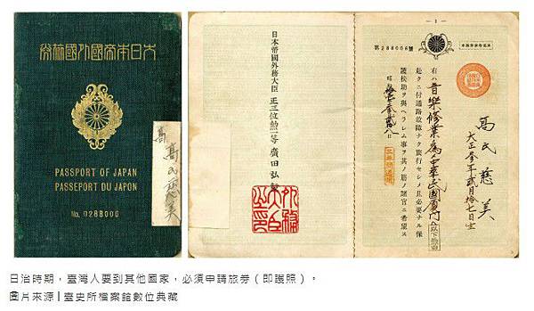 日治時期,臺灣人要到其他國家,必須申請旅券(即護照)。