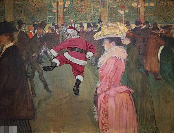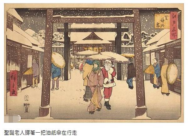 這是一幅中國傳統人物畫,在畫中有一位聖誕老人撐著一把油紙傘在行走。這幅畫反應的是宋朝時期的市井生活。咋一看毫無違和感,聖誕老人仿佛在宋朝就傳進了中國。當然這是被人惡搞的,這一系列繪畫叫:聖誕老人很忙!