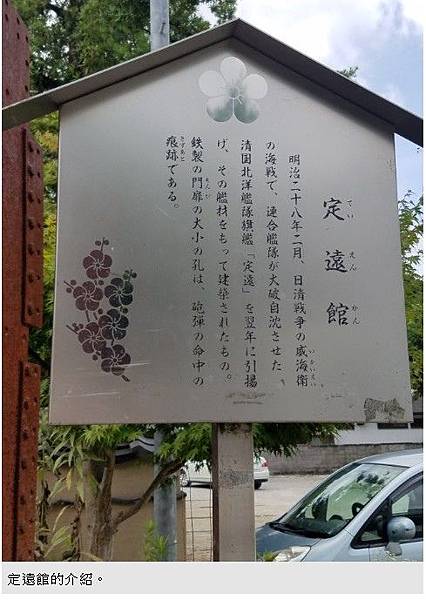 文中說,甲午戰爭結束後,日本香川縣知事小野隆助於1896年3月,出資買下威海衛港中定遠艦殘骸,並僱用潛水員拆卸定遠艦上的材料,在自己家鄉太宰府建造了一座「定遠館」。