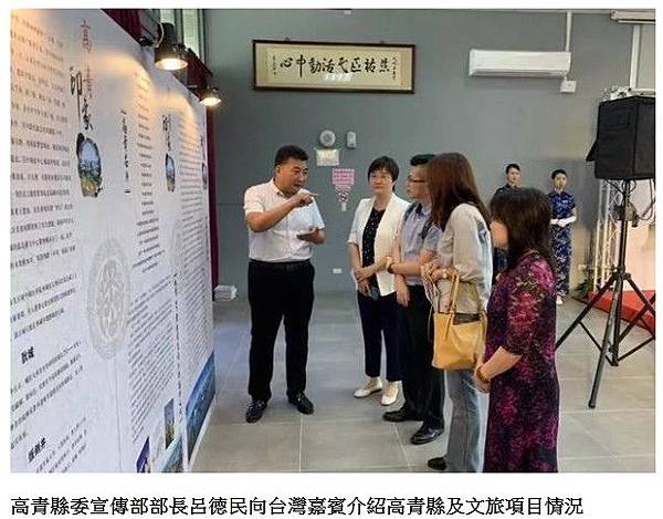 高青縣委宣傳部部長呂德民向台灣嘉賓介紹高青縣及文旅項目情況