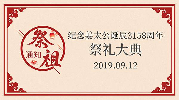 根據中華崔氏己亥年祭祖活動籌委會通知,中華崔氏決定於2019年9月12日組團參加“紀念姜太公誕辰3158週年祭禮大典,具體活動安排如下: