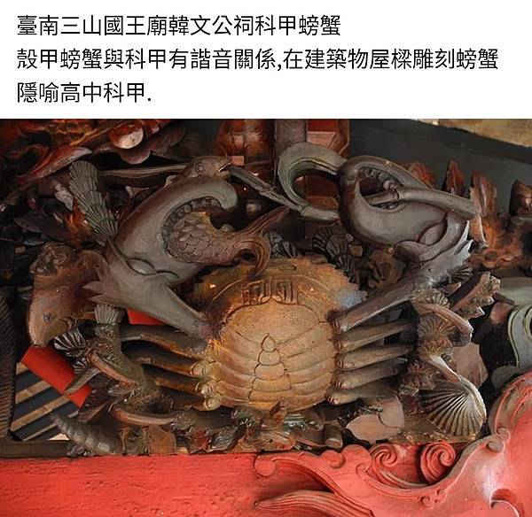 臺南三山國王廟韓文公祠屋樑甲殼螃蟹