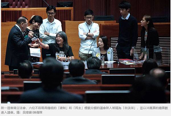 新一屆香港立法會,六位不容易用傳統的「建制」和「民主」標籤分類的議會新人被稱為「自決派」,並以38萬票的總票數進入議會。