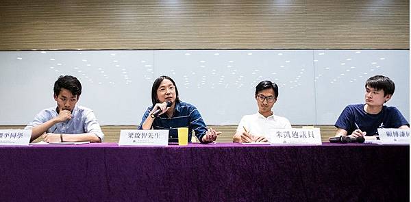 《香港民族論》編者梁繼平,時事評論員梁啟智 及立法會議員朱凱廸就香港未來「民主」、「民族」走向自決進行討論。攝:盧翊銘/端傳媒