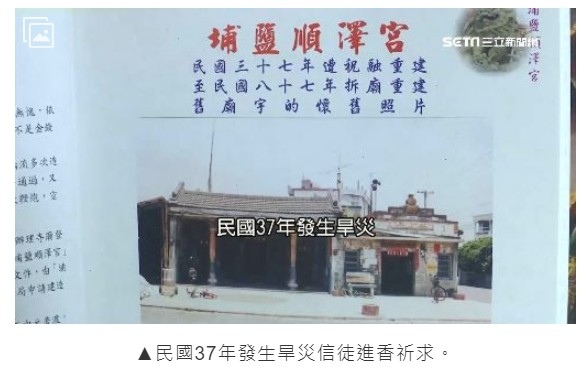 持續帶您來了解因帽子爆紅的彰化埔鹽順澤宮,主神供奉玄天上帝,香火鼎盛是當地信仰中心在地方上有300多年歷史,其中最廣為流傳的神蹟傳說是民國37年發生旱災,信徒進香玄天上帝為百姓假扮水神借雨,水神為報復「火燒順澤宮」,當時玄天上帝遶境回駕似乎有所感應,就在進廟前神轎扛轎處斷掉,因神蹟顯赫香客絡繹不絕。