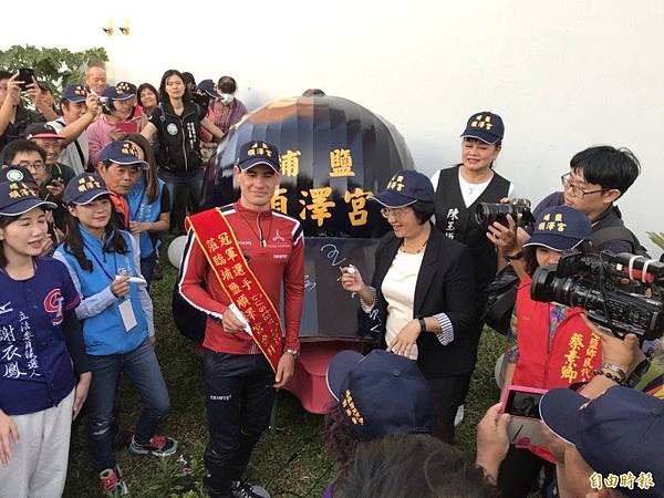 挪威鐵人三項好手伊登今天下午來到「冠軍帽的發源地—埔鹽順澤宮」,他在神明前首度揭露,之所以在會撿起來,是因為它是漢字,覺得有股神秘力量,比賽之所以戴上它,是因為漢字很特別,可以跟其它選手作區別,沒想到一頂帽子為他帶來好運,伊登還許下諾言,若明年東京奧運拿到冠軍一定還會再來還願。伊登一下車就受到鄉親熱烈的歡迎,廟方以獅陣來迎接他,看到現場每個人都戴著跟他一樣「冠軍帽」,他覺得「好神奇」。 https://is.gd/kWW0Xa