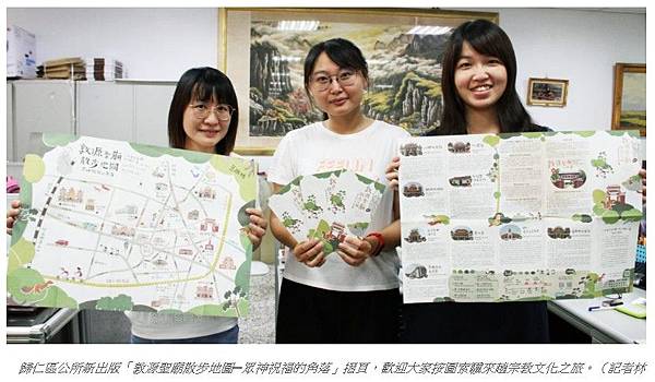 歸仁區公所新出版「敦源聖廟散步地圖─眾神祝福的角落」摺頁,歡迎大家按圖索驥來趟宗教文化之旅。(記者林偉民攝)